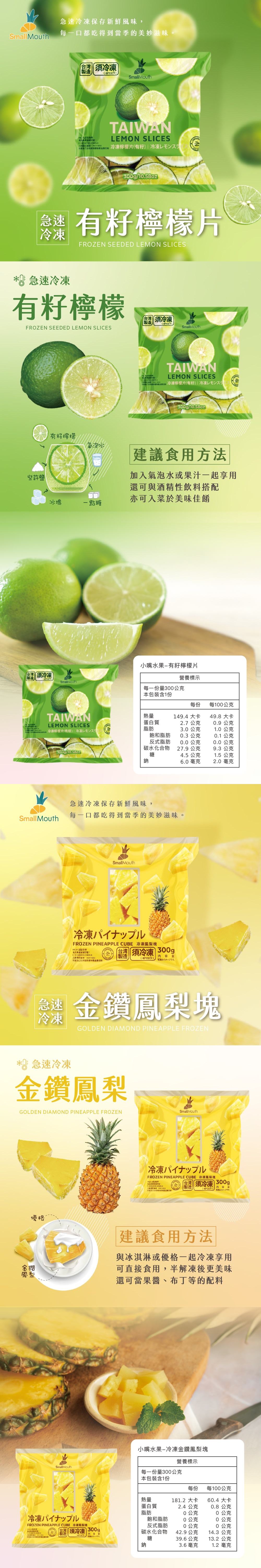 內容物成分(如含有豬、牛成分請加註國別):新鮮有籽檸檬100%、新鮮金鑽鳳梨100%、新鮮有籽檸檬100%