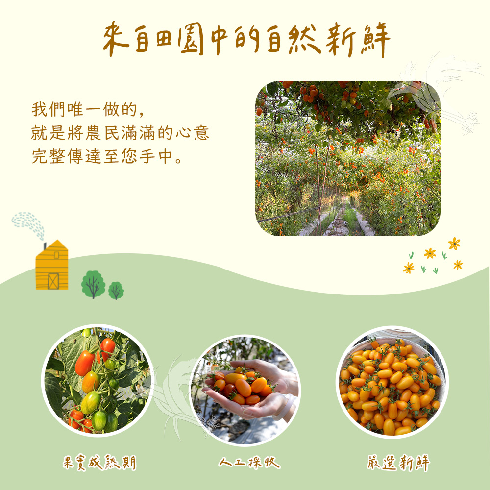 1.橙蜜香小番茄不帶蒂頭出貨,更新鮮更方便食用。
